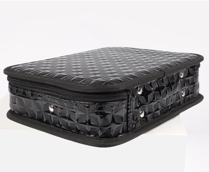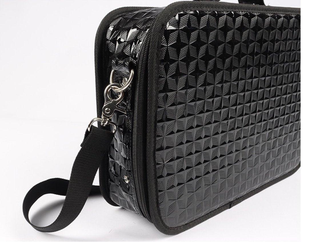 This hair scissor toolbox comes in two sizes. The larger size includes storage for scissors, combs, razors, clips, and additional space for a hairdryer as well as other accessories like a spray bottle, cape, and so on. The standard size fits all of the above except for hairdryers.