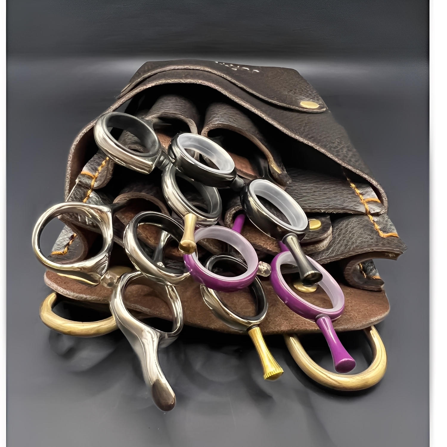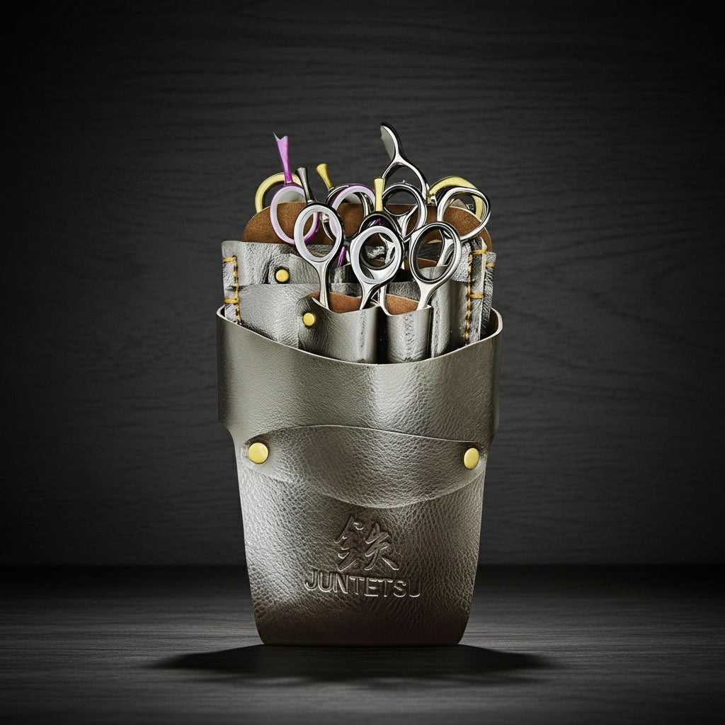 "Finally found the perfect holster for my premium scissors! The brown leather is absolutely beautiful - got that classic professional look that just gets better with time. Love how the wave design isn't just for show - it actually makes accessing your tools super smooth. Been using it for my Juntetsu and Yasaka collection, and the lined compartments really protect the blades. The brass studs are solid.. no cheap fastenings that'll give up after a few months. Actually impressed with how the embossed logo hasn't worn down even after daily use. Perfect size for five scissors without being bulky. If you're looking for something that'll protect your investment and look proper professional, this is definitely worth it!"