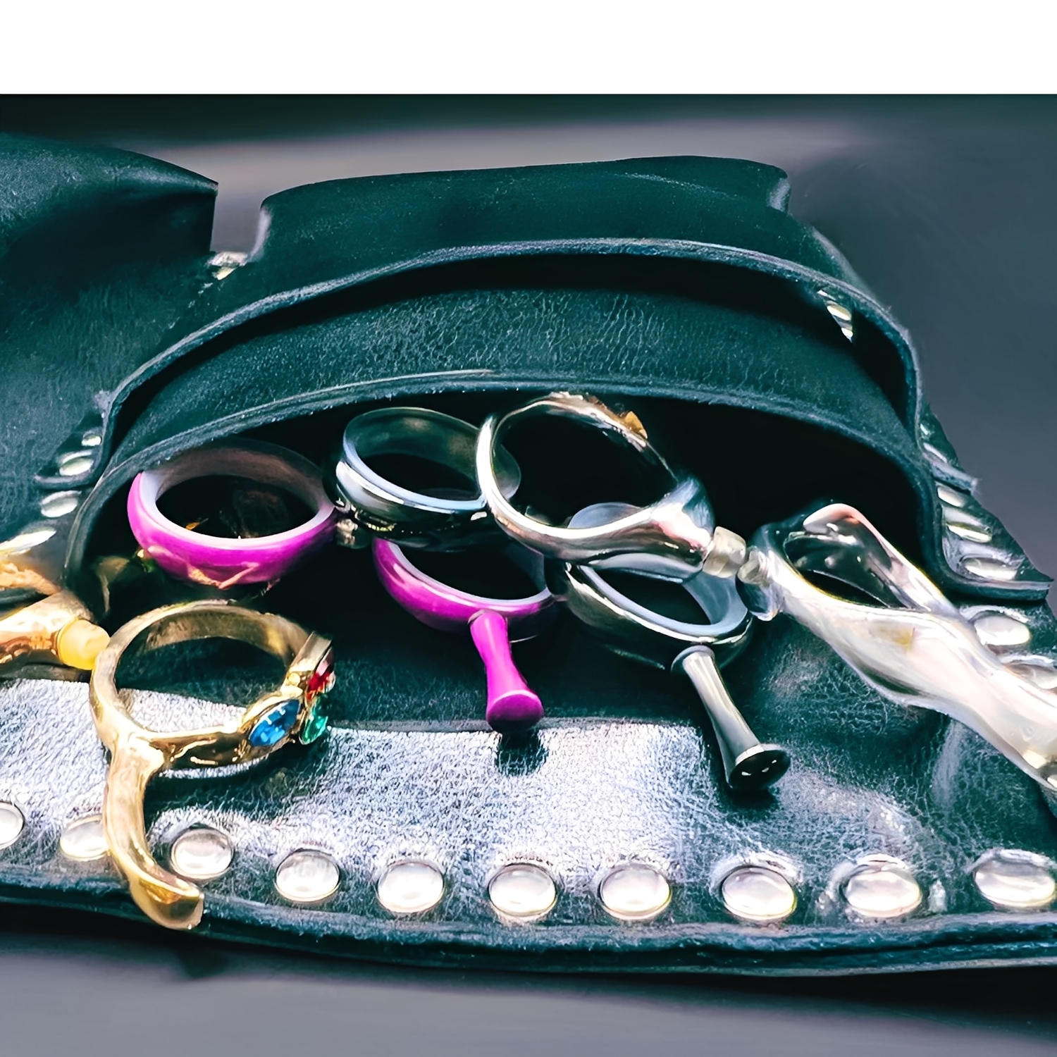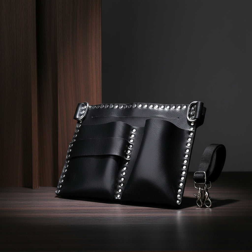 "The Kuro holster perfectly captures that Japanese attention to detail! The minimalist design is absolutely stunning - everything has a purpose, from the studded accents to the way the compartments are arranged. Been using it with my Juntetsu and Kasho scissors, and the diagonal layout makes switching tools so natural. Love how the flat design keeps everything close while the kuro leather develops this beautiful patina with use. The brass studs add just the right amount of detail without compromising the clean aesthetic. There's plenty of room for all my daily essentials - scissors, combs, clips - but it stays incredibly sleek. If you appreciate Japanese craftsmanship and need a holster that's as sophisticated as it is functional, this is definitely the one!"