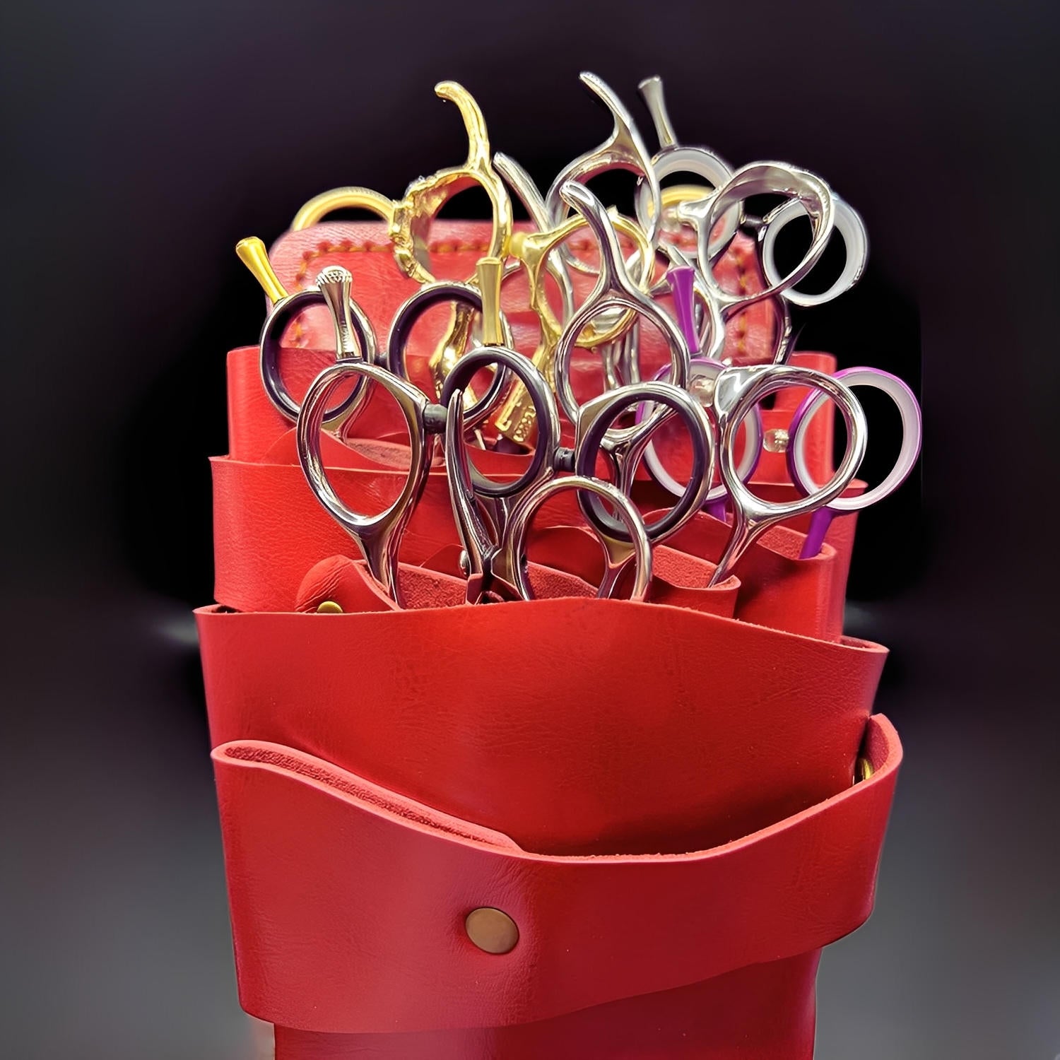 "Not only is this RARE, but this red leather holster isn't just about making a statement - though it definitely turns heads in the salon! The way they've designed the compartments is brilliant for keeping my Joewell and Kasho scissors organised. Love how the leather is thick enough to protect but still lets you grab tools quickly during a busy day. The brass fixtures are solid.. none of that cheap hardware that falls apart after a few months. Been using it for everything from my 7-inch shears to my texturizers, and even my Kamisori razor fits perfectly. The red leather actually gets better looking with use - develops this gorgeous deep tone that really shows it's a professional piece. If you're serious about both protecting your tools and standing out in the salon, this is absolutely worth the investment!"